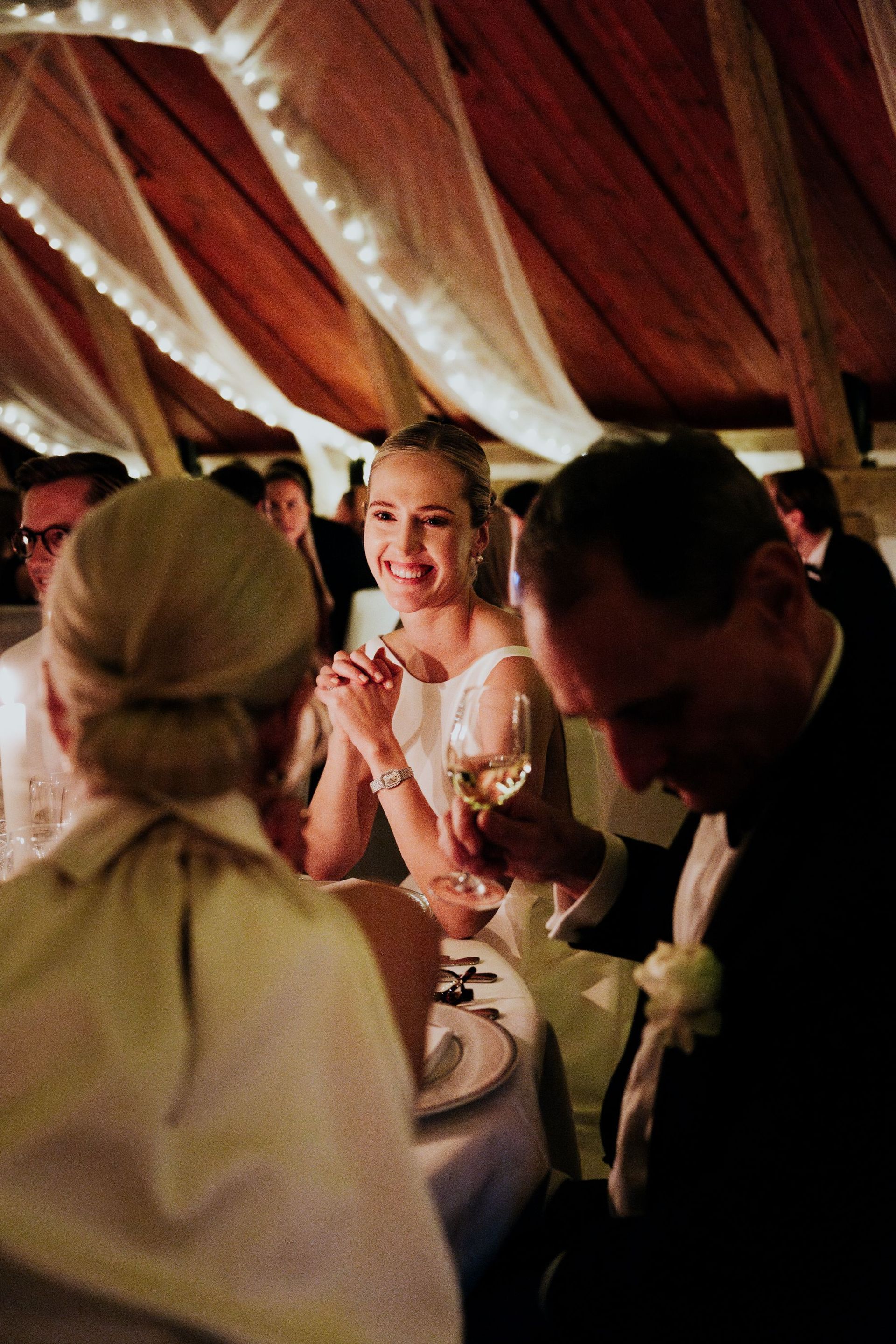 Etter middagen fortsetter festen med dans og hygge i de stemningsfulle lokalene, hvor både atmosfære og omgivelser bidrar til å gjøre bryllupsdagen uforglemmelig.