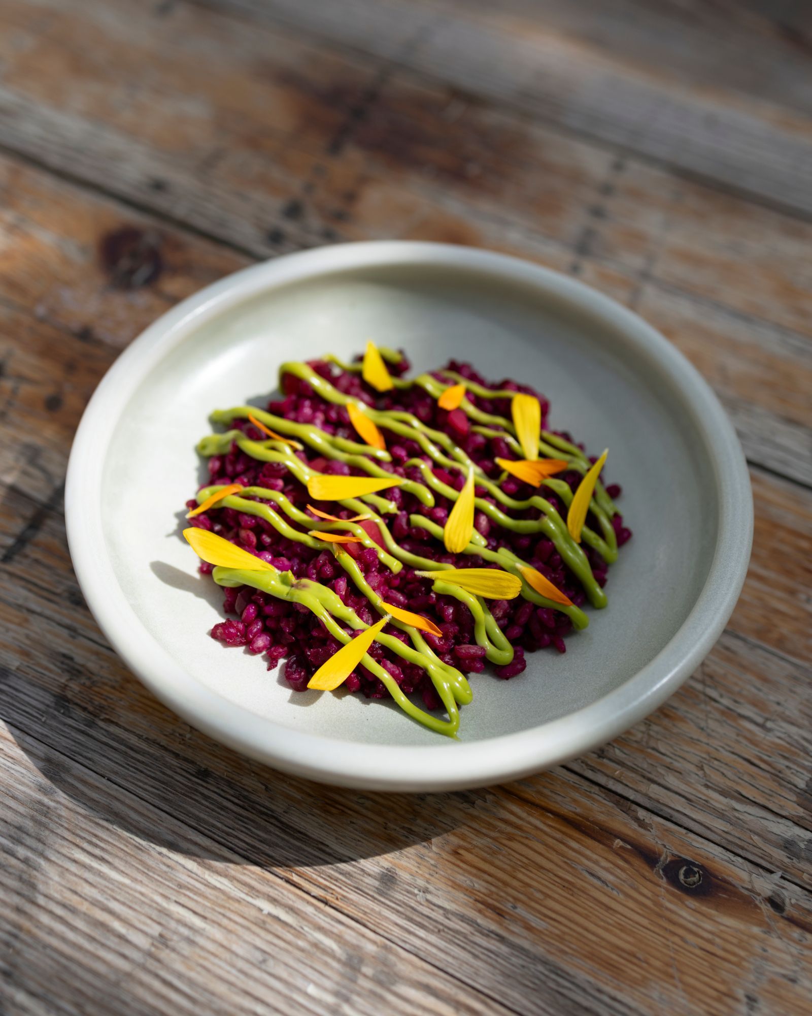 Vi serverer sesongbaserte lunsjmenyer laget av gårdens egne økologiske råvarer, med fokus på rene smaker og kortreist kvalitet.