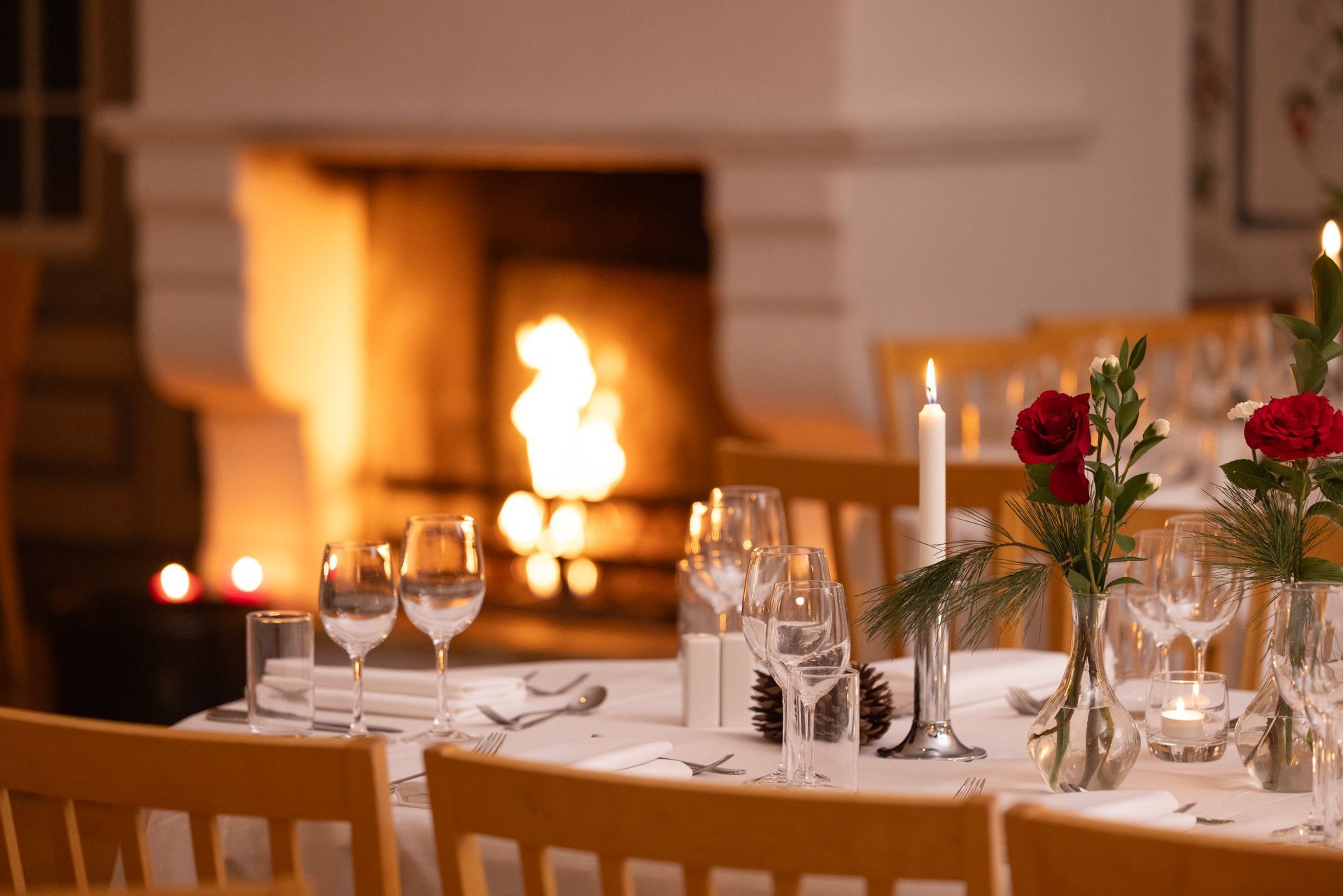 De åpne peisene i alle rom gjør at snøen utenfor blir den stemningsfulle kulissen du ønsker deg til din store dag.