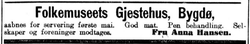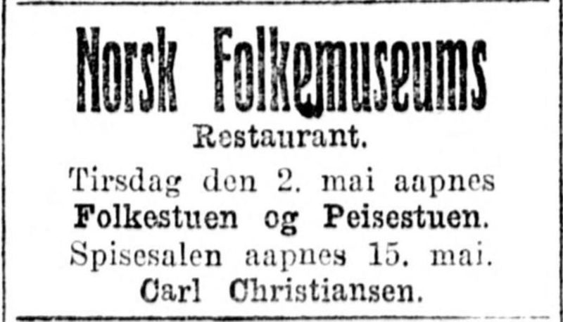 «Restaurantforholdene paa Folkemuseet er betydelig bedret siden ifjor, restauranten er udvidet og omindredet og faar som enhver anden bedre restaurant ogsaa sin 2den etage.»