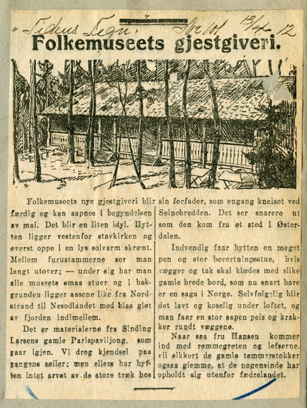 «Folkemuseet trænger for øvrig en større restaurant baade for de besøgende paa søndagene og ellers naar mange folk stevner did; men fremforalt næste gang, der bydes til fest. Og er vi ikke feil underrettet, er dette spørgsmaal allerede taget op af rette vedkommende, og da bliver det nok ordnet.»